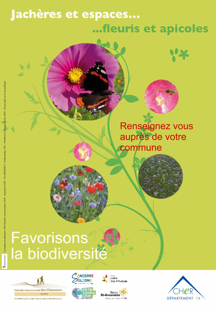 Lancée à l’initiative de la Fédération Départementale des Chasseurs du Cher et du Conseil Départemental du Cher avec le concours des Pays et PETR du Cher dont le Pays Sancerre Sologne, l’opération des jachères, espaces fleuris et mellifères contribue, outre sa fonction d’embellissement des paysages, à offrir du printemps à la fin de l’automne, un couvert attractif pour de nombreuses espèces d’oiseaux et d’insectes dont les abeilles.